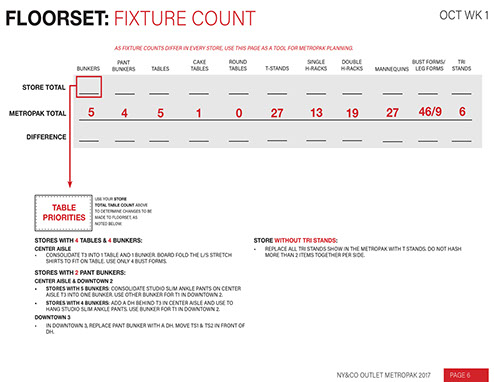 Monthly floorset document created for Outlet stores.